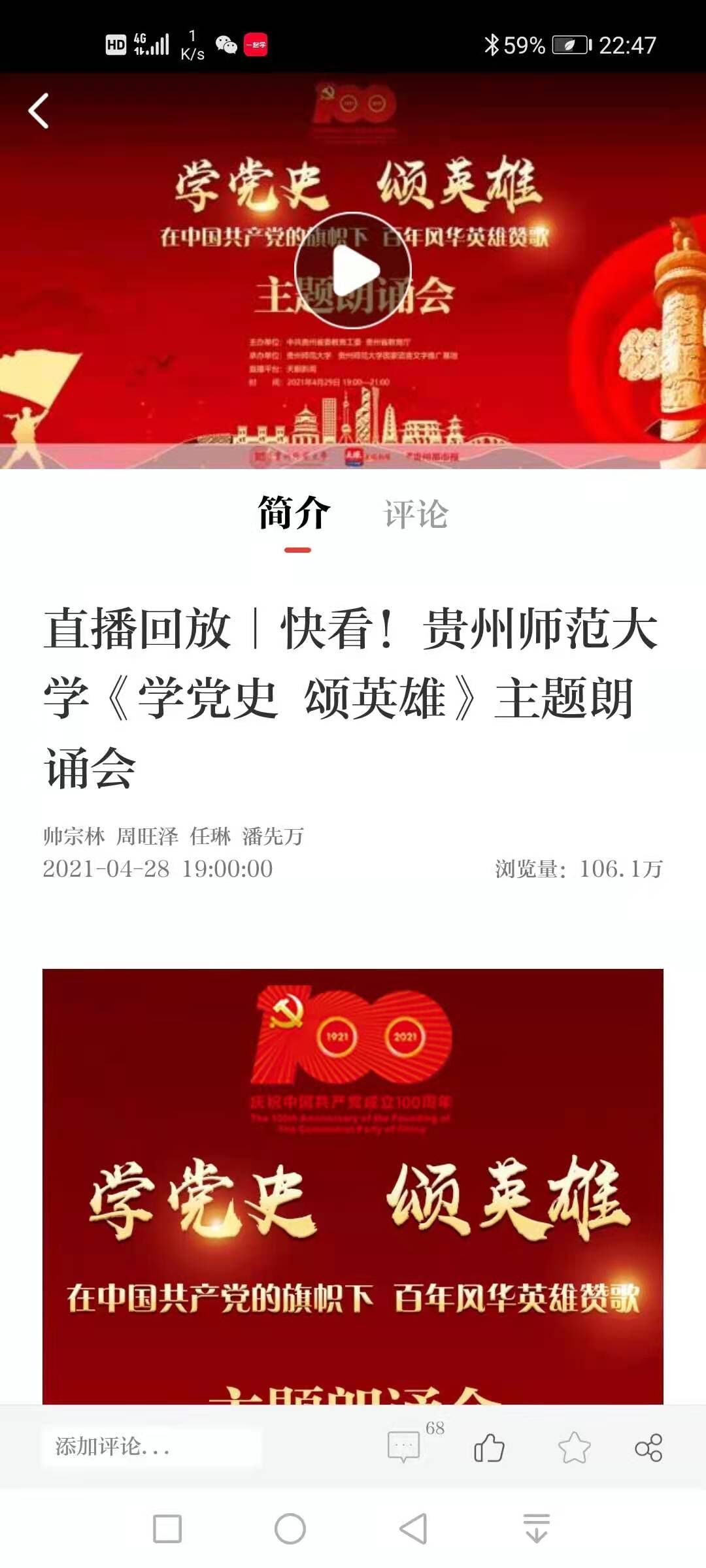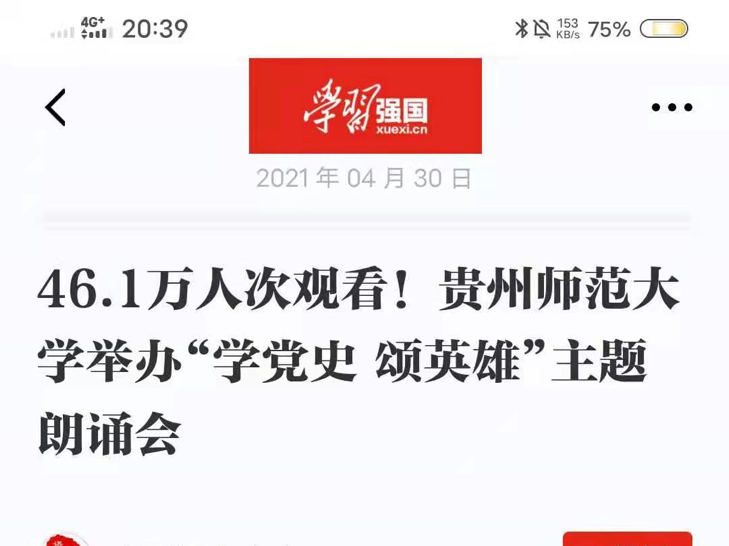 学习强国报道:46.1万人次观看!贵州师范大学举办“学党史 颂英雄”主题朗诵会