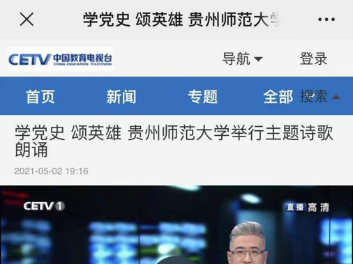 CETV中国教育电视台报道:学党史颂英雄贵州师范大学举行主题诗歌朗诵