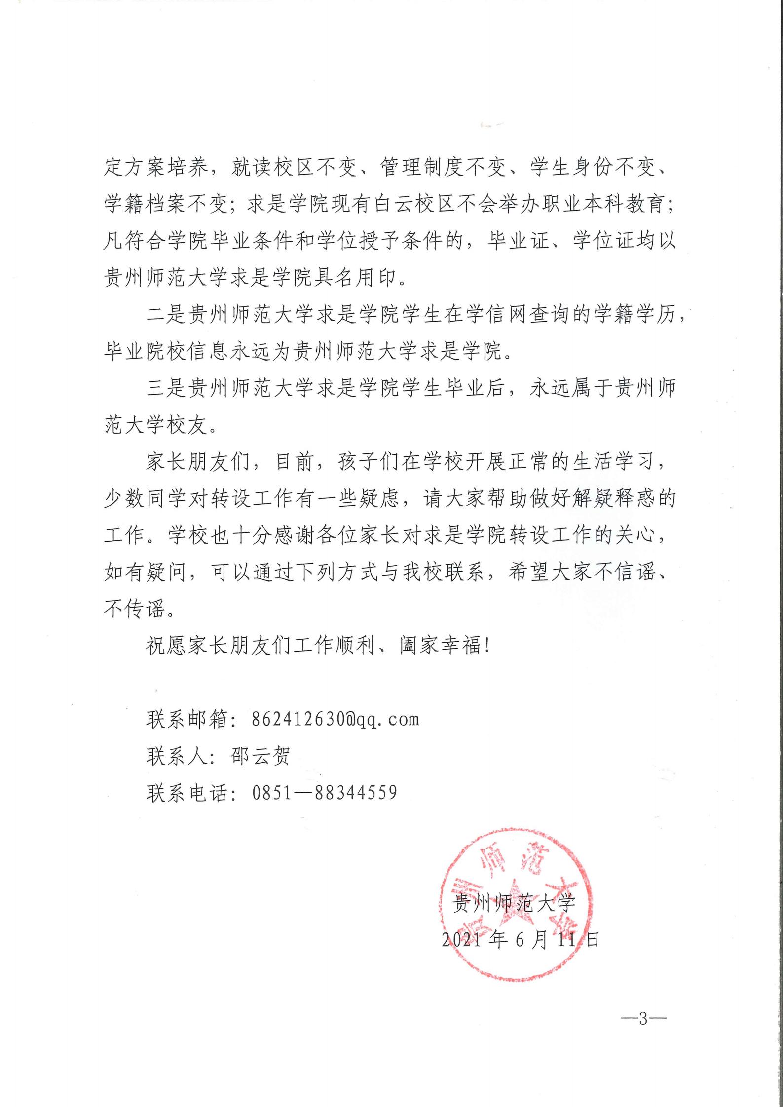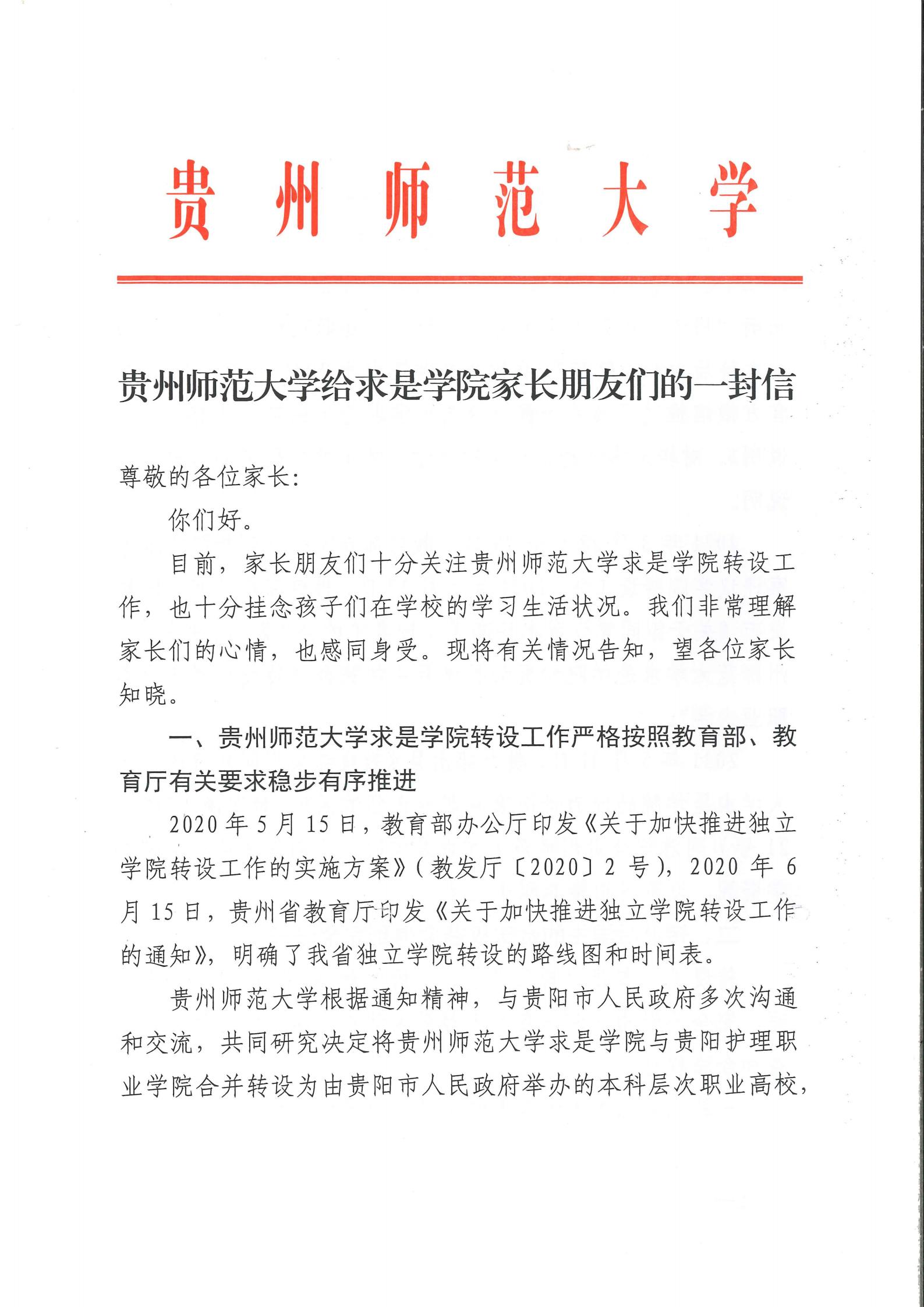 贵州师范大学给求是学院家长朋友们的一封信