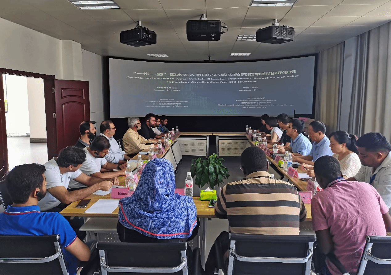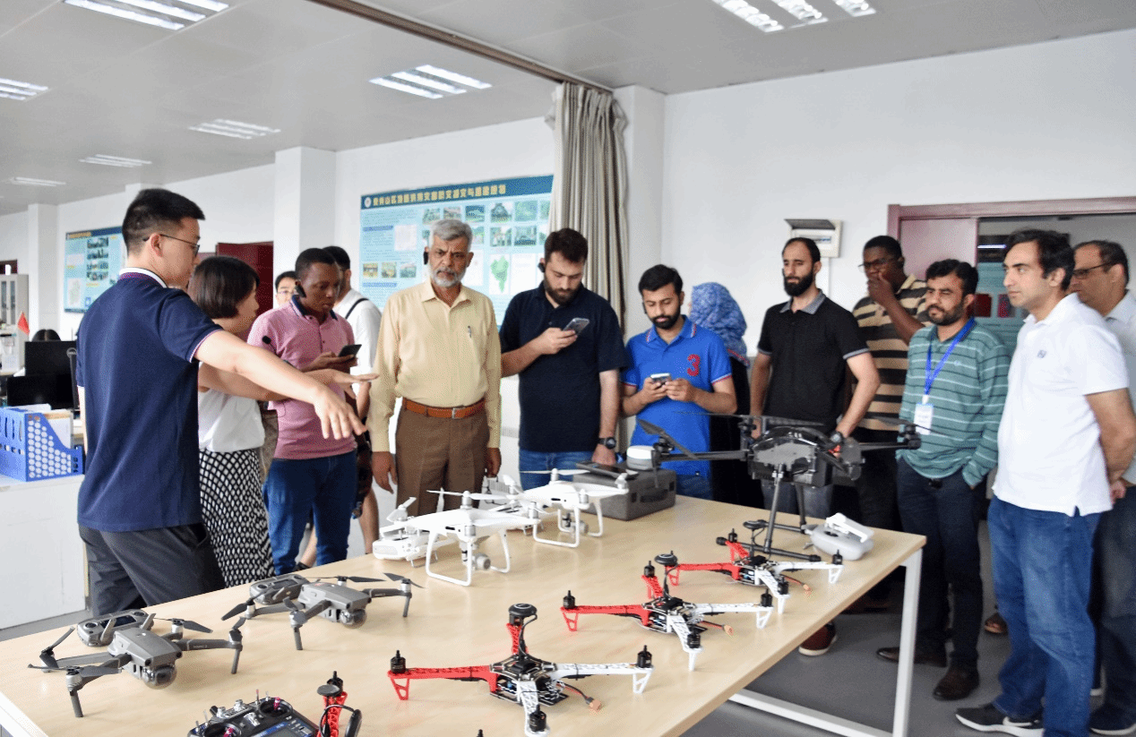 8月13日下午,商务部援外人力资源培训项目司“‘一带一路’国家无人机防灾减灾救灾技术应用研修班”学员参观我校科技平台国家遥感中心贵州分部,来自巴基斯坦、坦桑尼亚、汤加等国家的13名官员和技术专家,以及贵州科学院的部分专家参与了此次活动。